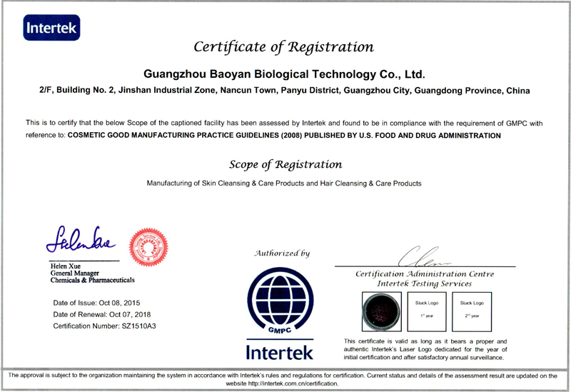 廣州葆妍生物科技有限公司位于廣州番禺金山工業園,成立于2009 年,經營面積20000平方,集化妝品(護膚類、彩妝類)配方開發、生產加工于一體,專業化、規模化的化妝品OEM/ODM/OBM企業。 “追求卓越,秉承健康,成就美麗”的經營理念,致力于健康美麗事業。